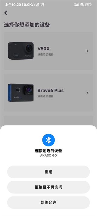 在弹窗中点击允许,以便搜索并连接到附近的设备。