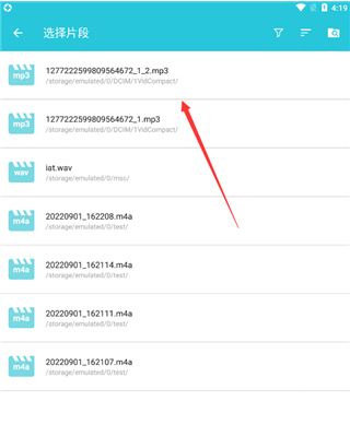 从手机相册中选择选择你要转换的片段;