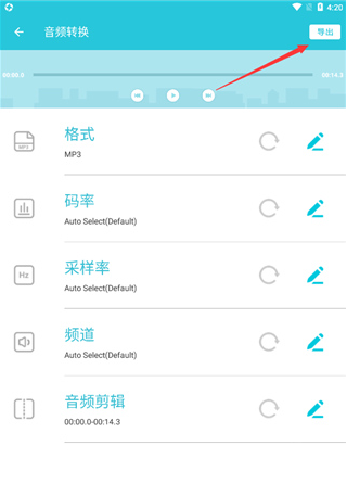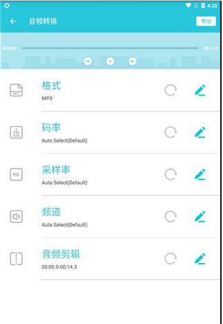 在下方的编辑界面里,用户能够自行设置格式、码率、频道、采样率,还可以进行音频剪辑等各类功能操作。