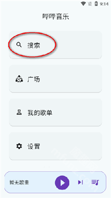1,打开哔哔音乐,点击搜索按钮,就能快速搜索并找到想要的歌曲