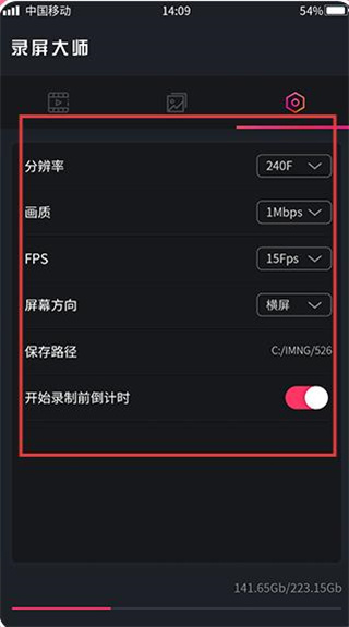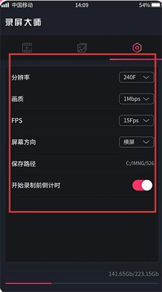 在设置界面中,用户可以对分辨率、画质、帧率FPS、屏幕方向、保存路径等参数进行调整,同时也能开启或关闭开始录制前的倒计时功能,以便根据自身需求定制理想的录屏效果。