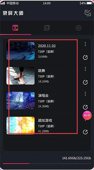 在本站完成安装后点击打开进入,录制视频列表会展示已录制视频的名称、720P竖屏分辨率、文件大小等信息,便于用户对已录视频进行管理。
