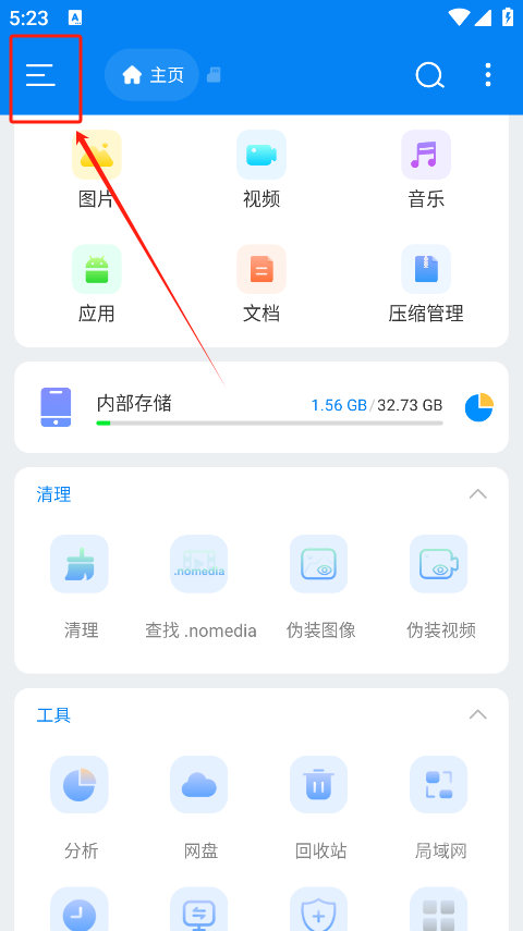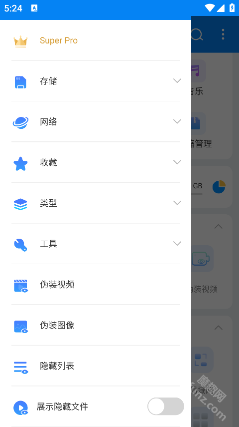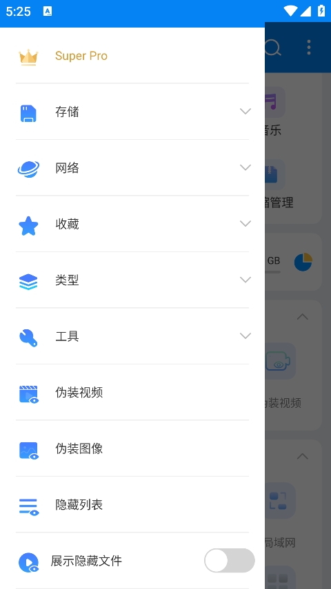 点击首页左上角的“三横线”图标,就能通过快捷操作打开本地存储、收藏、隐藏文件等多种功能。