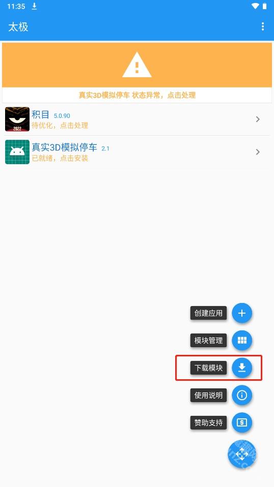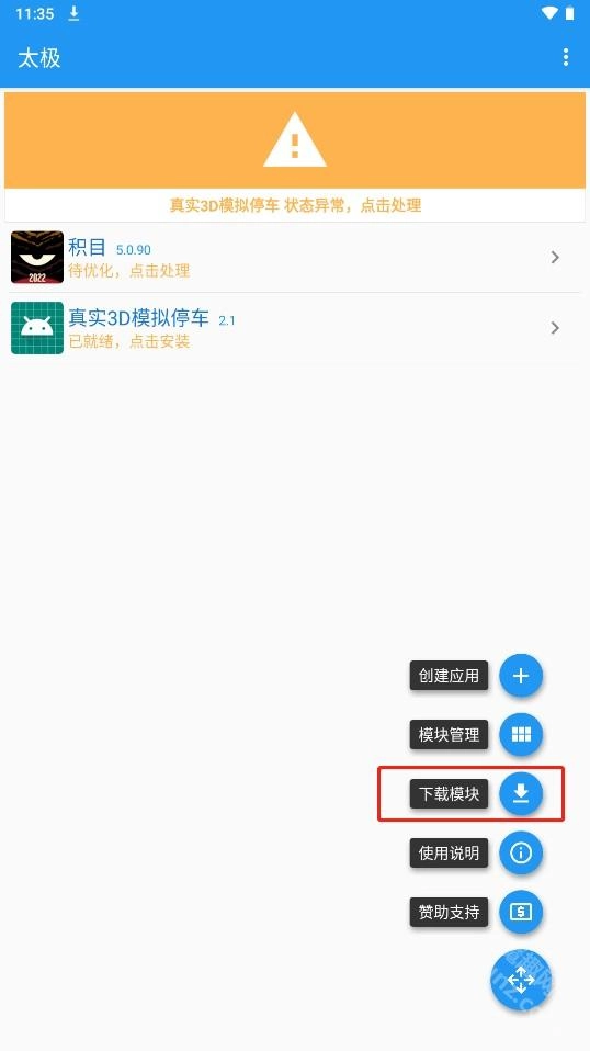 打开模块管理即可查看已安装的模块,勾选模块时会提示该模块支持的应用版本,应用版本可在太极主界面查看,版本不兼容则无法使用模块。
