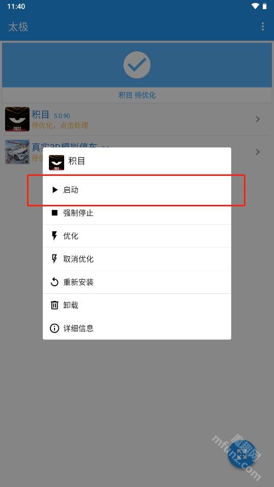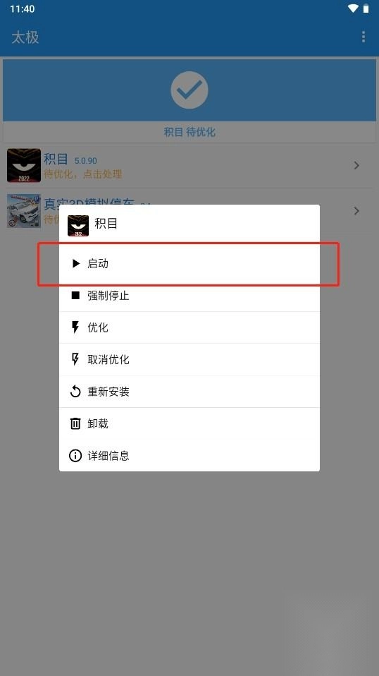 长按应用列表即可查看相关选项,点击“启动”按钮就能启动对应的应用。