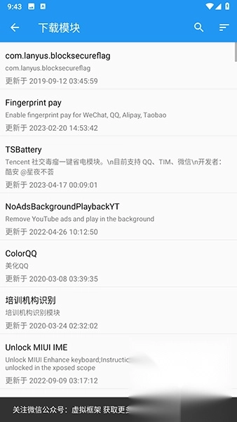 可以在主界面的模块中进行操作,或者前往虚拟框架公众号中进行相关操作。
