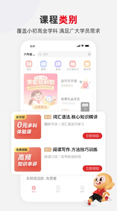 我们为大家免费提供所有学习课程,这里的师资力量十分雄厚,并且全面覆盖中小学的各个科目,能够满足不同学生的学习需求。