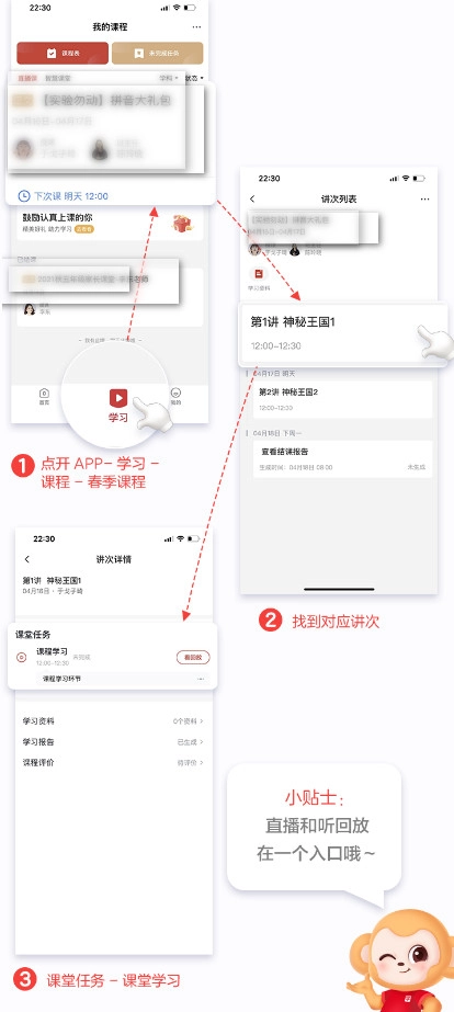 2. 若需了解上课步骤或回放观看方法,可查看相关指引。