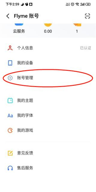 接着在菜单中找到“账号管理”选项,并点击进入。