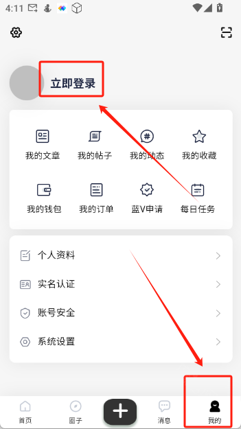 进入首页点击右下方“我的”,然后选择“立即登录”