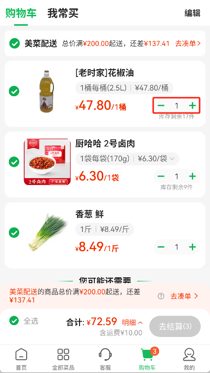 查看购物车:在购物车页面,您能查看已选商品的总价并进行结算,还可以修改商品数量或者删除商品。