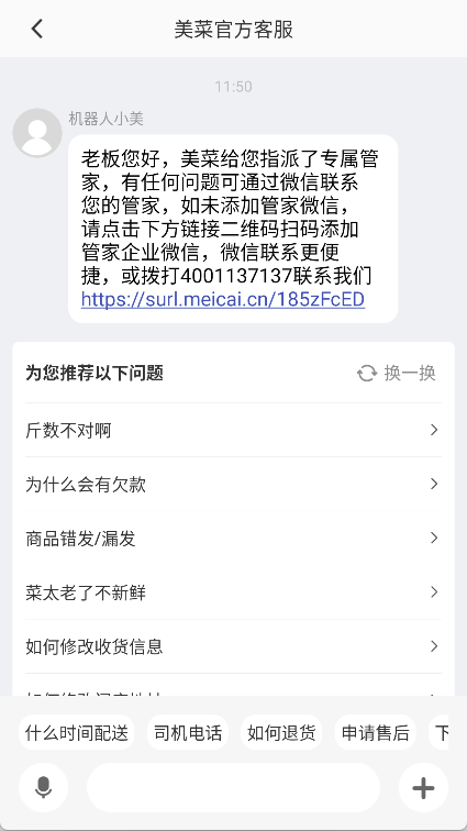 客户服务:如果您在使用过程中遇到任何问题,可以拨打美菜商城的客服服务中寻求帮助。
