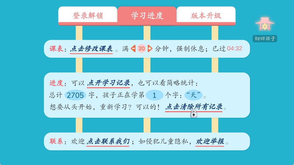 互动式学习:孩子能够借助点击操作、聆听跟读汉字等途径开展互动学习,以此增强学习的兴趣并提升学习效果。
