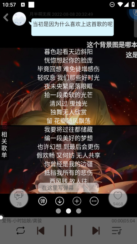 选中歌曲后,直接点击即可播放。播放列表有歌词还有弹幕功能。