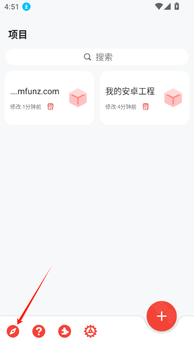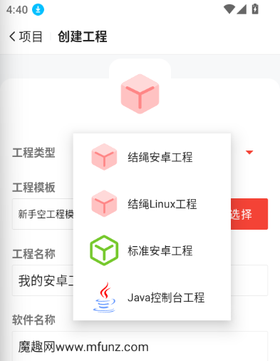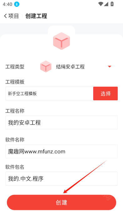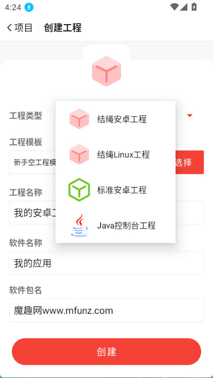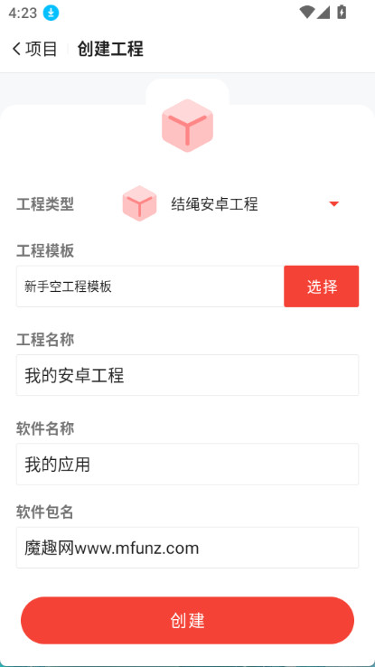 解开结绳,点击右下角那个红色的加号按钮,就能进入创建工程的界面了。