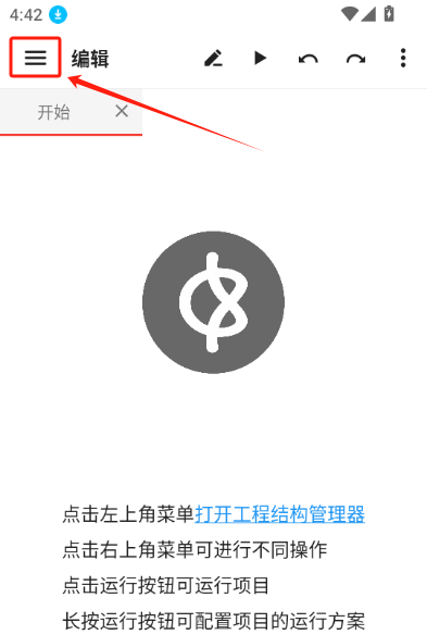 进入编辑界面后,点击左上角的菜单按钮,打开工程结构管理器,接着利用智能代码编辑器开展编程工作,该编辑器支持代码高亮显示与智能提示功能。