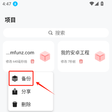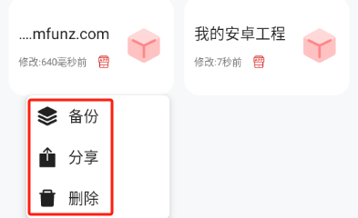 备份新工程:新建工程完成后,需对该工程进行备份操作。一般情况下,结绳具备备份功能,你可通过长按工程名称的方式来选择执行备份。