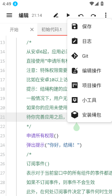 结绳是一款手机端的中文编译工具,能让用户在手机上开展软件开发工作。该工具具备工程文件的备份、分享与删除功能,但不支持直接复制工程文件。