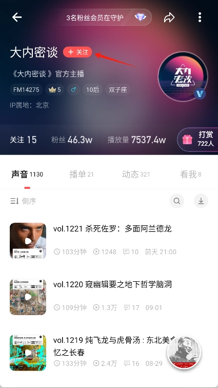 另外,还能借助关注功能,对喜爱的电台或主播进行关注,这样就能及时收到更新通知了。
