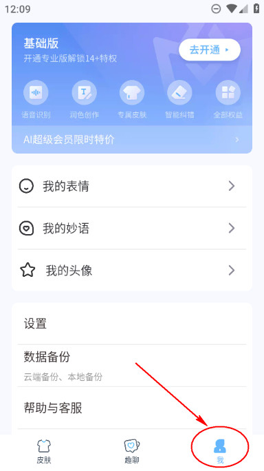 首先打开手心输入法,在界面右下方找到“我”这个选项,然后点击进入。
