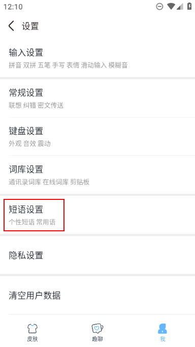 3、接着选择【短语设置】点击进入。