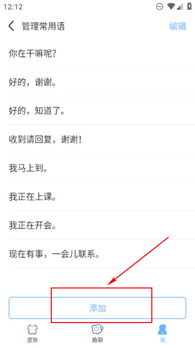 在下方找到【管理常用语】,点击进入后,点击添加,最后保存即可。