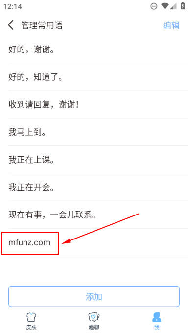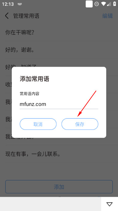 5.保存完成后就可以在管理常用语中看到刚新加的快捷短语了,后期就可以直接使用。