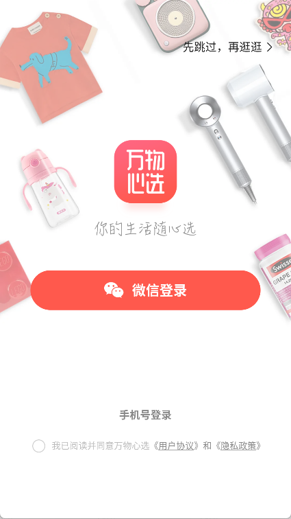 获取应用的步骤如下:首先要在本站下载并安装万物心选应用,接着打开该应用完成注册与登录操作。