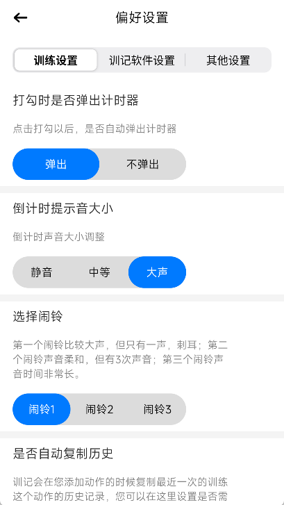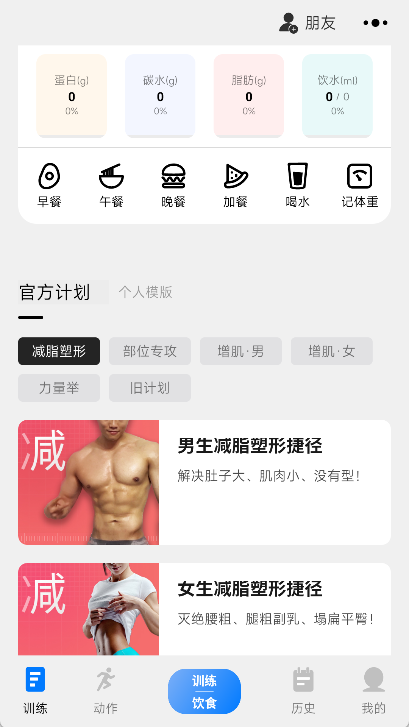 历史记录:历史页面呈现过往的训练记录,可实现补录、编辑、复制与分享操作。