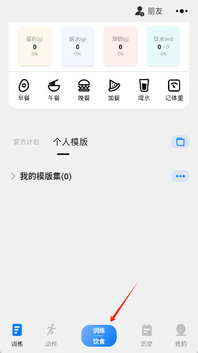 创建训练的操作步骤如下:首先在首页找到并点击“训练/饮食”按钮,接着新建一个训练记录,此时计时器会自动开始计时。