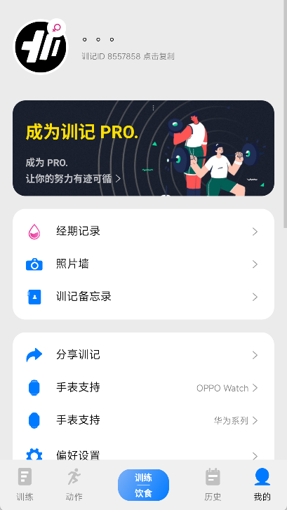 偏好设置:登录训记后,通过“我的”进入偏好设置;