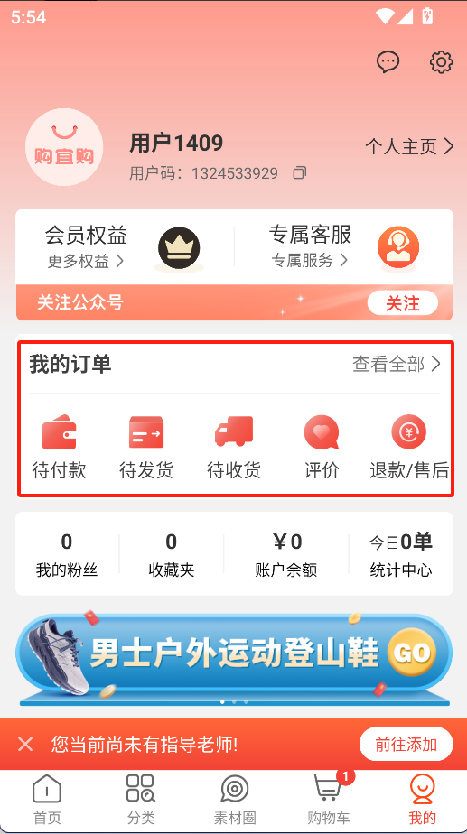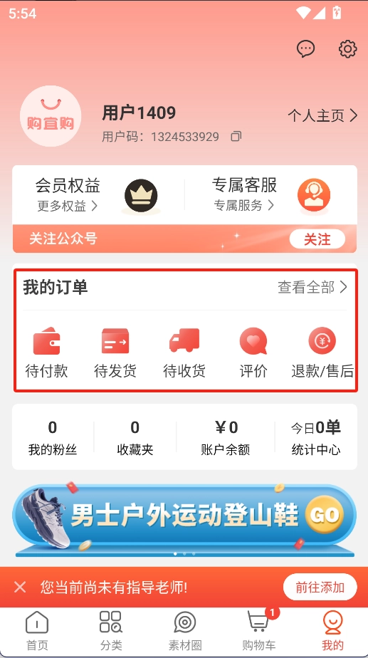 个人中心:在“我的”页面,能够查看订单状态、待收货订单以及优惠券等相关信息。