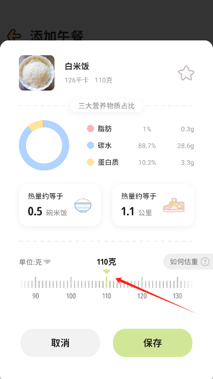 在这里可以对食物的种类、数量或卡路里数值进行修改,也能添加新的食物记录。