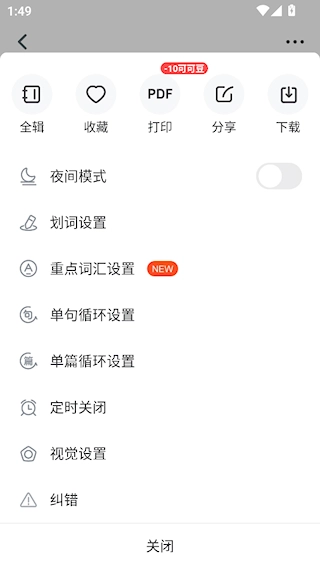 3、轻点右上角按钮,就能开展划词、循环等多项设置。