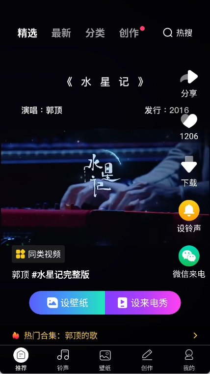 挑选来电视频作品:在软件的分类板块或者推荐栏目里,能够浏览查看并挑选出自己中意的来电视频作品。