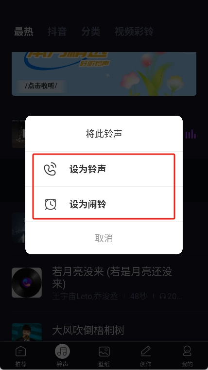 设置来电或闹钟铃声:此外,还能在铃声页面浏览心仪的歌曲,把它设为手机来电铃声或者闹钟铃声。