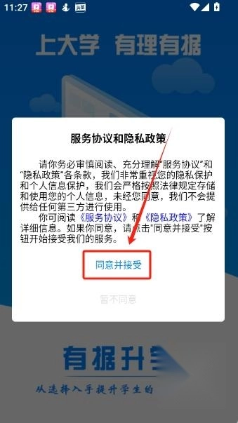 并打开有据升学,选择“同意并接受”