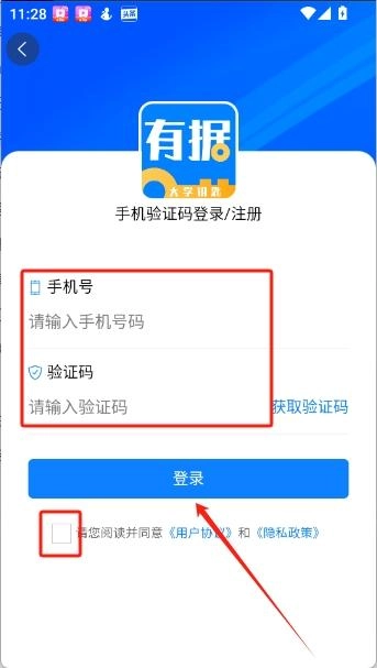 输入手机号码、验证码,勾选相关协议,点击“登录”按钮就能完成账号登录