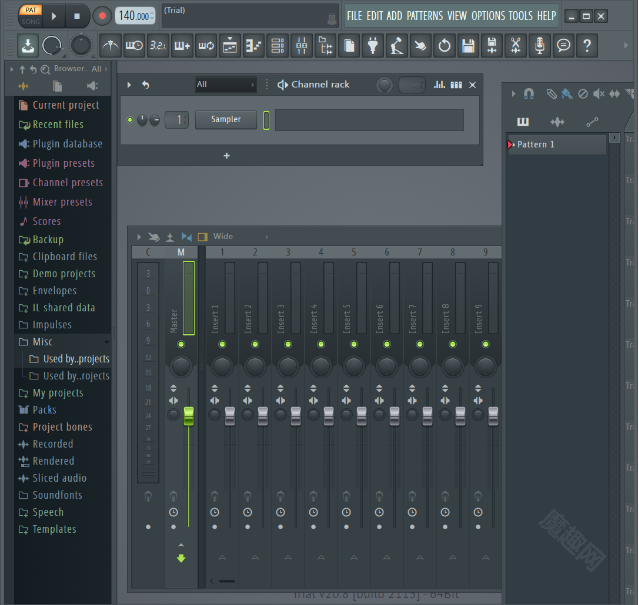打开FL Studio编曲软件,能看到默认窗口的文字显示为英文。