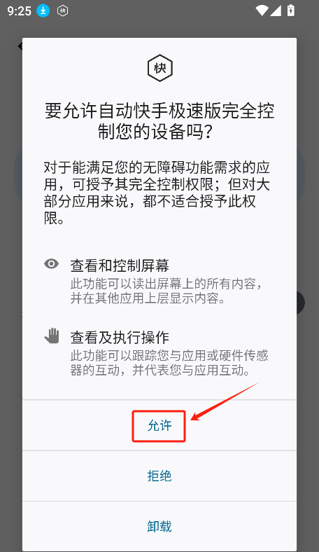 首先,安装快手极速版并打开软件,然后点击“开启辅助服务”按钮。
