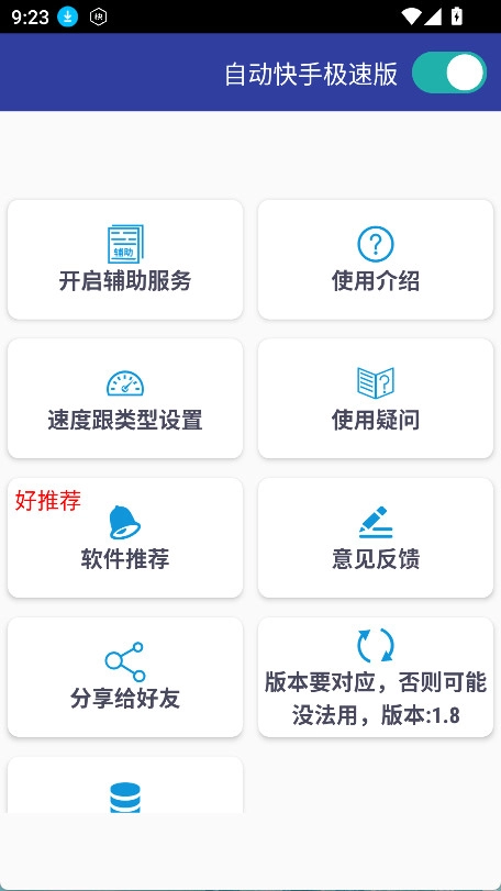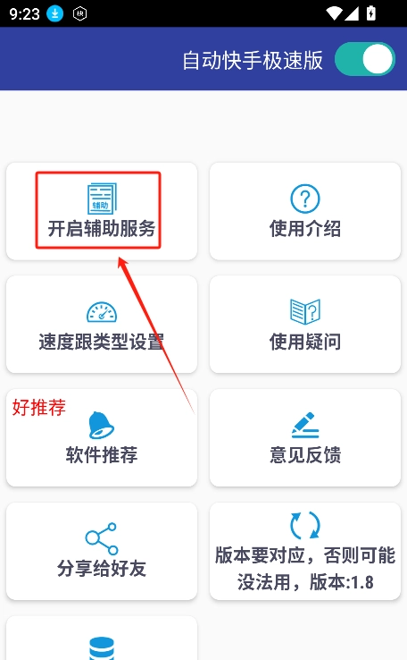 自动快手极速版有不少版本,魔趣网实际测试后发现当前1.8版本是最好用的,开启辅助服务时和其他版本不同,这个版本无需观看视频广告就能开启,特此推荐给大家。