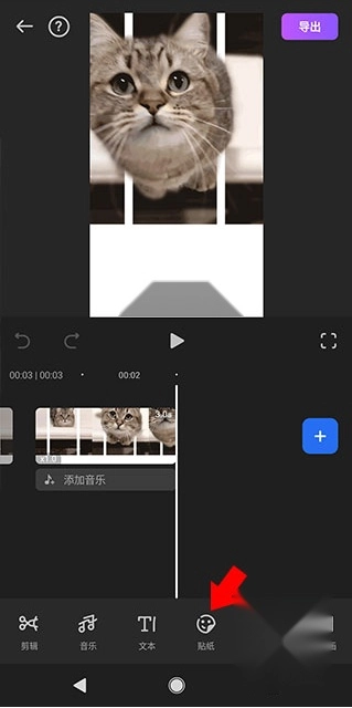 位于最下方的“工具栏”,能够用于视频剪辑,还可以给视频添加文字、贴纸、特效等元素。