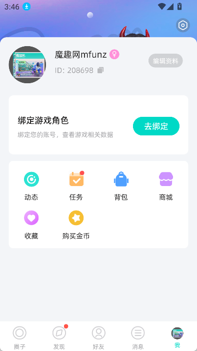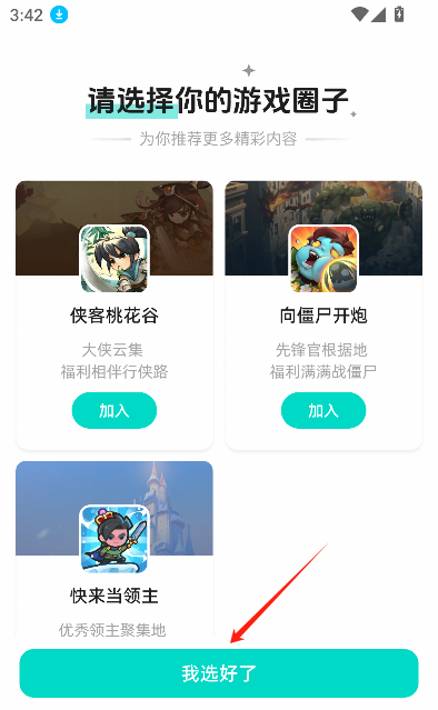 注册成功后,选择游戏圈子,即可使用梦游社。