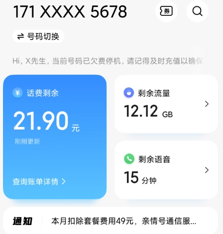信息清晰明了:账单查询、流量与语音余量查看、卡号相关信息查询都更为便捷。