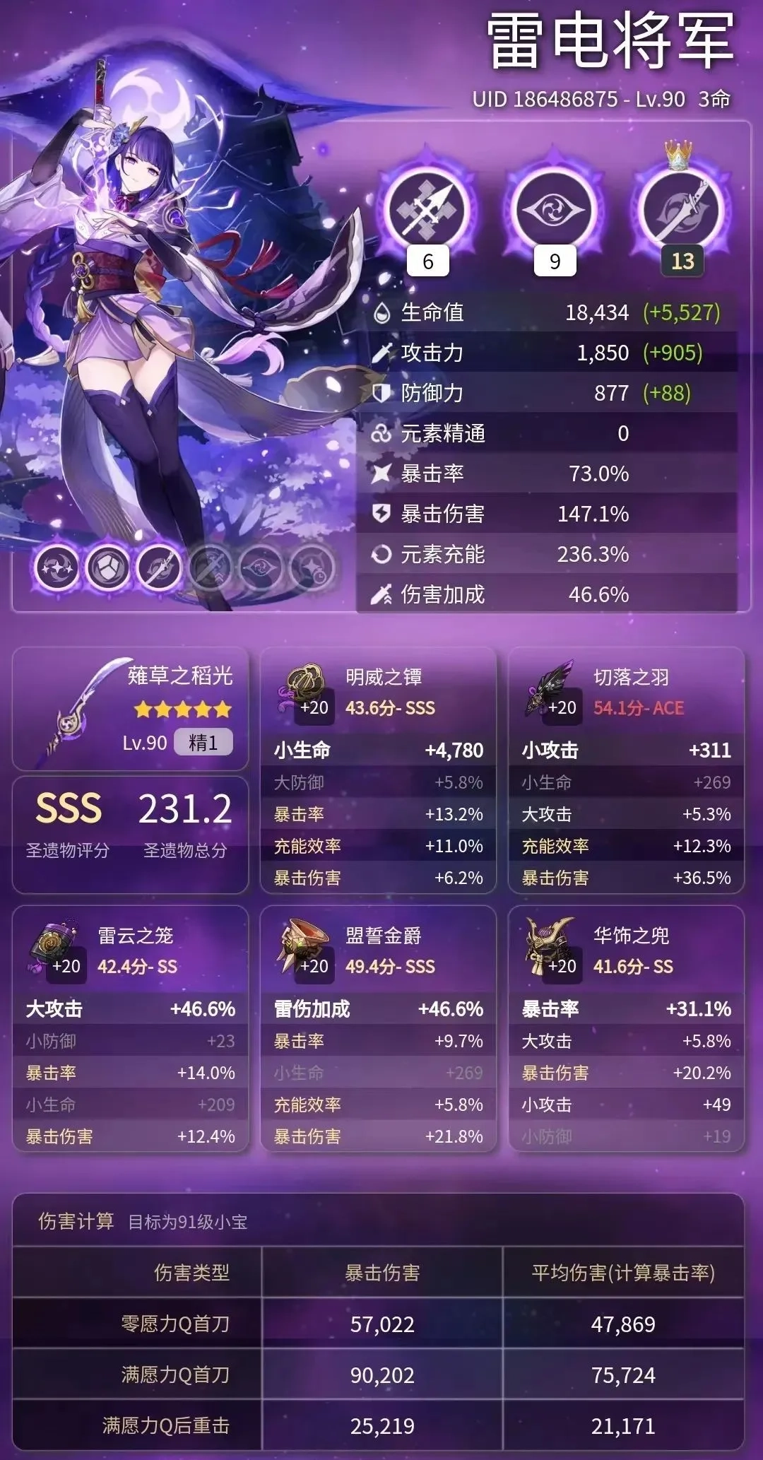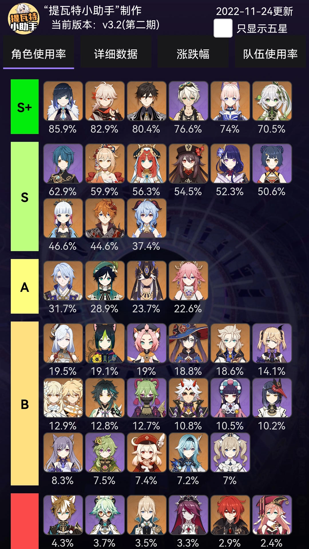 角色练度查询:可查看角色的综合能力情况,涵盖等级、面板数据、所装备武器以及圣遗物配置等多个维度。