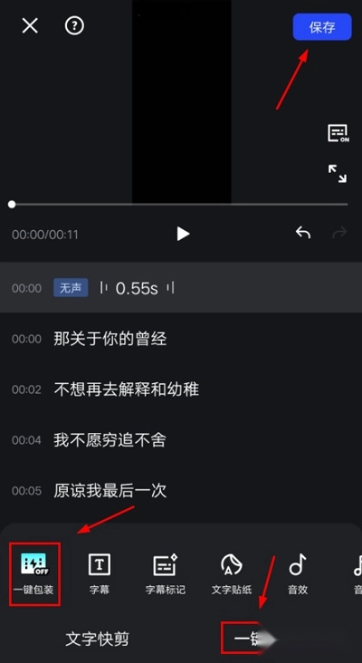 剪辑完成后,点击【一键包装】系统会自动生成剪辑好的视频,视频生成后,你可以在当前页面预览视频的剪辑效果,若对效果满意,点击【保存】按钮就能将剪辑好的视频存储到手机里了。