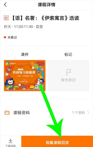 进入课程详情页面后,点击“观看课程回放”按钮,即可观看直播课的回放内容。