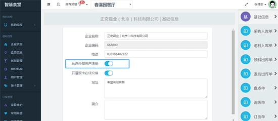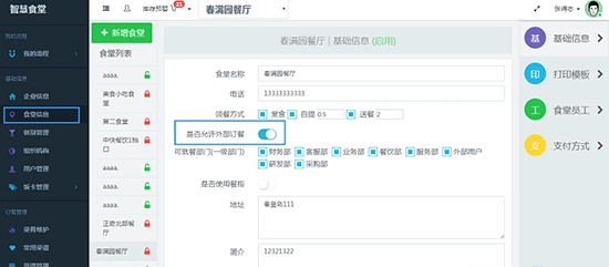 食堂相关信息:在食堂的基础信息设置板块,开启“是否允许外部订餐”这一功能选项。