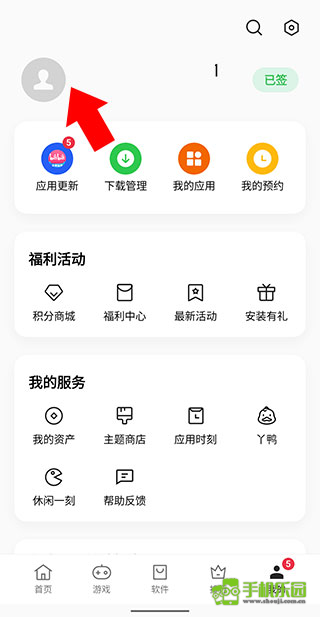 进入oppo软件商店最新版,点击右下角“我的”