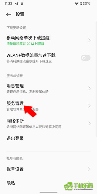 进入设置界面后,我们点击“服务管理”